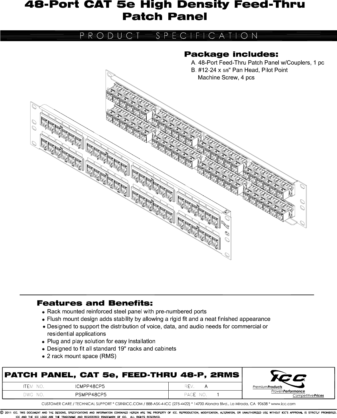 Navigare online o scaricare Scheda Tecnica per Sezionatori ICC ICMPP48CP5. ICC ICMPP48CP5 patch panel Manuale Utente